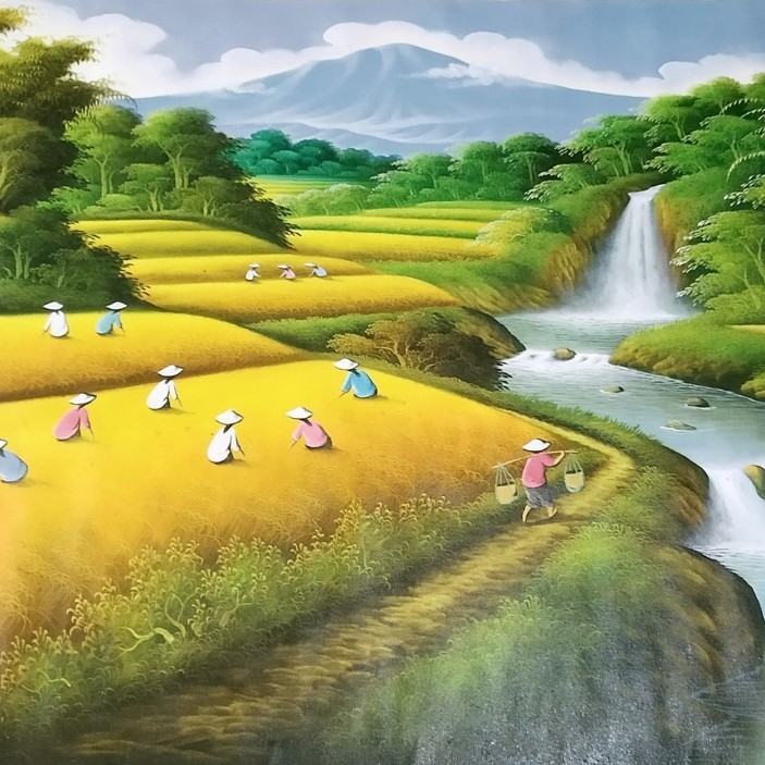 Lukisan pemandangan gunung sawah 85 x 135 cm. Banyumas · lukisan pemandangan air terjun / panen padi /pemandangan . Lukisan pemandangan panen padi sawah . ✓ gratis untuk komersial ✓ tidak perlu kredit. Gambaran tentang petani yang tengah menanam padi, lengkap dengan suasana khas . Lukisan pemandangan sawah yang menguning dan panen padi, rp166.250.